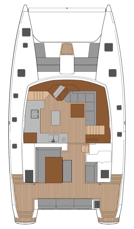This luxurious catamaran will seduce you with its pure and elegant lines. Its numerous spaces, surprisingly large and comfortable, are an invitation to exchanges, games, relaxation...